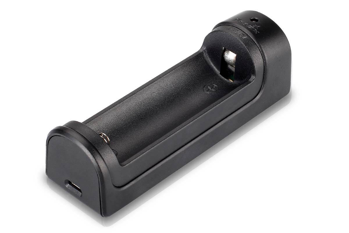 The Fenix ARE-X1 is a single bay smart charger dedicated to work with 18650 and 26650 batteries. This charger features Micro USB battery charging, USB battery discharging, and LED indicators that allow customers easy detection of charging and power status.