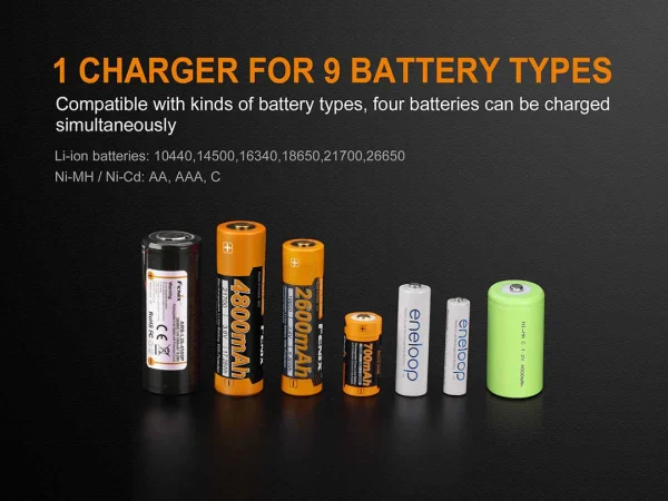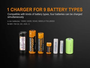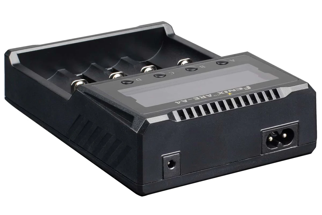 The Fenix ARE-A4 is a four-channel smart charger, built for different types, and different size, rechargeable batteries. The charger will automatically choose the correct charging mode for each battery type, whether it be Li-ion, Ni-MH or Ni-Cd. The high-definition LCD screen displays charging status and battery levels. Built-in multi-protection guarantees charging safety.