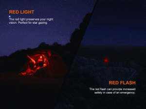 - 360° lighting mode has a max beam diameter of 20 meters, while Down light mode has a max beam distance of 80 meters. Both modes can be used together.