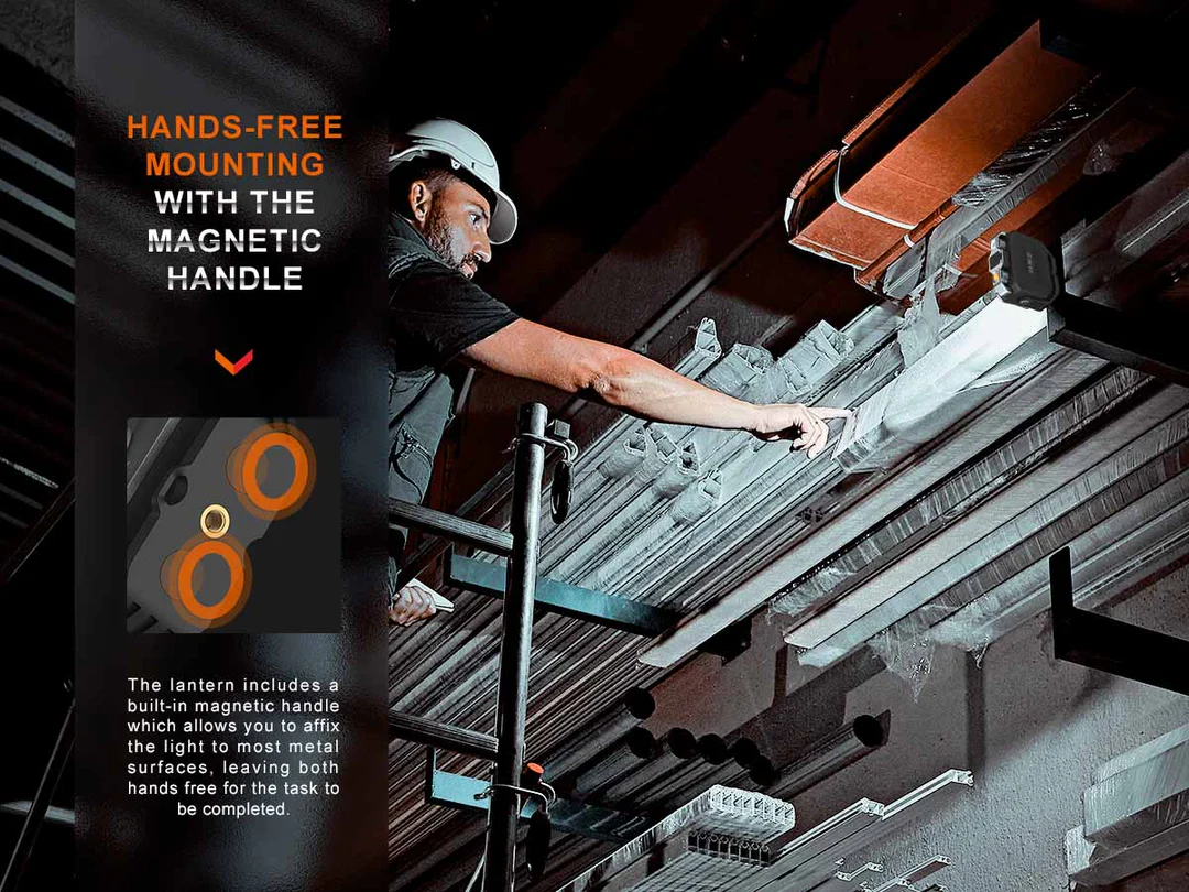 The Fenix CL28R Lantern is a great option to light up you campsite or worksite. A 2000 max lumen white light output, allows you to light up a 160° area up to 190 feet away. The most unique feature of the rechargeable lantern is the color dial which allows you to change the color temperature of the light from cool to warm—perfect for night photography and better color rendering. A separate red LED can be independently accessed for tasks where you need to preserve your night vision. The built-in batteries are charged via the USB-C port and the rechargeable lantern can be used as a power bank to charge other devices. These features along with its magnetic base and tripod mount makes this lantern the perfect hands-free lighting tool.