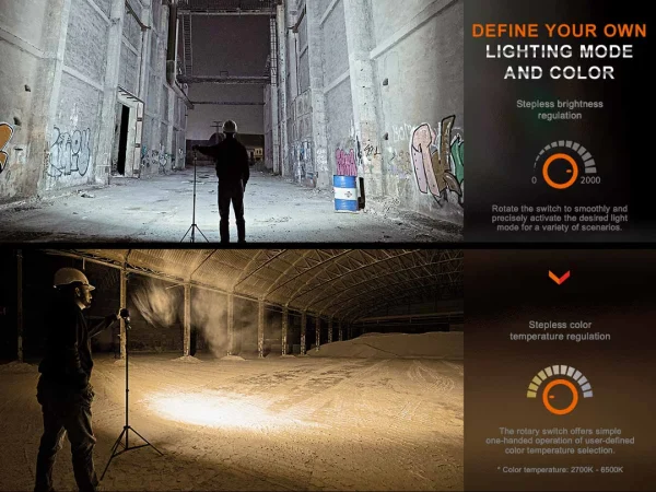 - Dual rotary switches allow free adjustment of the brightness and color temperature.
