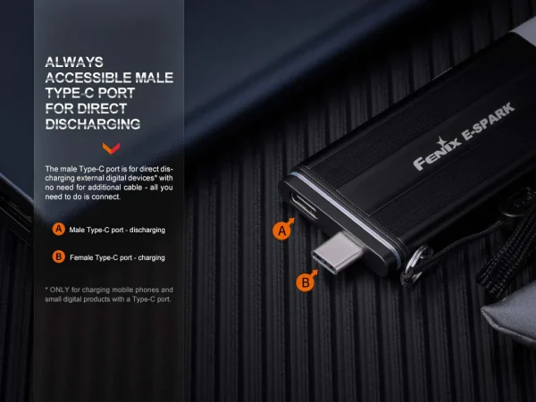 *Cannot be used to charge an Apple iPhone without USB-C Female to Lightning Adapter (sold separately, not currently sold by Fenix).