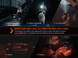 - Two white light LEDs and one red light LED, with a lifespan of 50,000 hours.