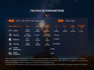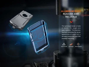 Super small and compact, the Fenix E03R V2.0 rechargeable keychain flashlight features upgraded performance with an extremely bright maximum 500 lumens. A single switch operates on/off and seven lighting modes, including four brightness levels, red light, red flashing, and a pulse light. The large battery level indicator lets you know when it’s time to recharge the built-in battery via the USB Type-C charging port. This flashlight is built tough because of its all-metal construction and IP66 rating, making it heavy splashproof, and dustproof. Smaller than your key fob, the Fenix E03R V2.0 flashlight will be a welcomed addition to your keychain.