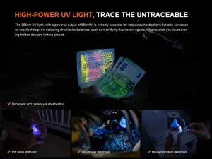 Don’t underestimate the compact Fenix E06R—it packs an impressive 700 lumens and a beam throw of 361 feet (110 meters). With 10 lighting modes—including four brightness levels, a UV light, a red laser pointer, and four decorative ring light modes—this small EDC flashlight is as practical as it is powerful. Equipped with a built-in 750mAh battery, it features a magnetic tail for hands-free use, decorative ring light, key ring loop, and a lock/unlock function to prevent accidental activation. Durable and feature-packed, the E06R is perfectly sized for everyday carry or as a dependable addition to your gear.