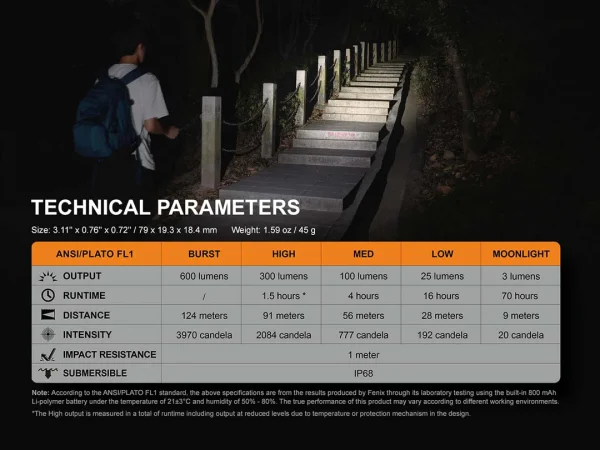 - Luminus SST20 LED with a lifespan of 50,000 hours.