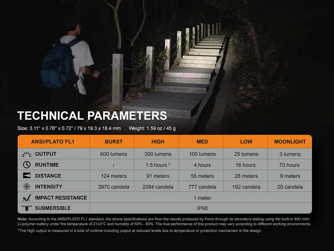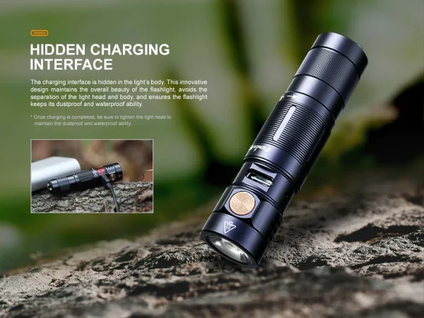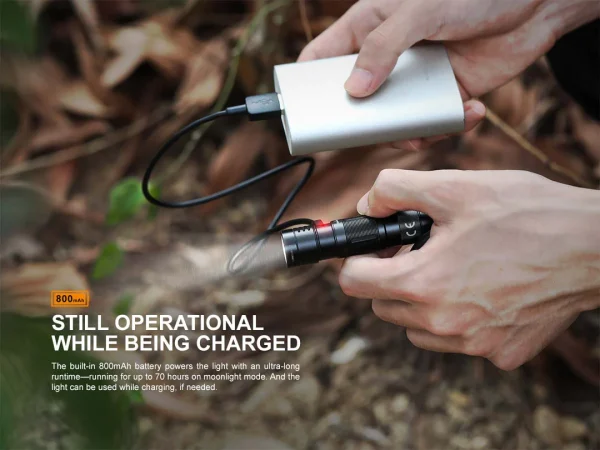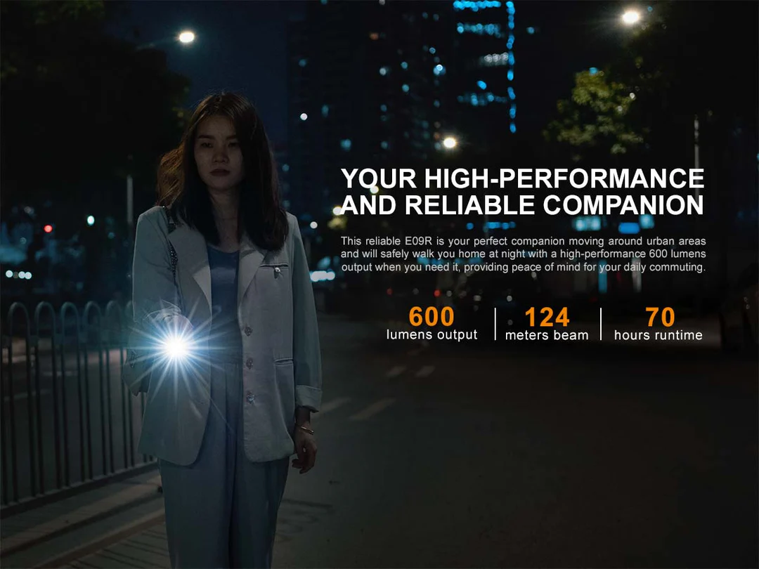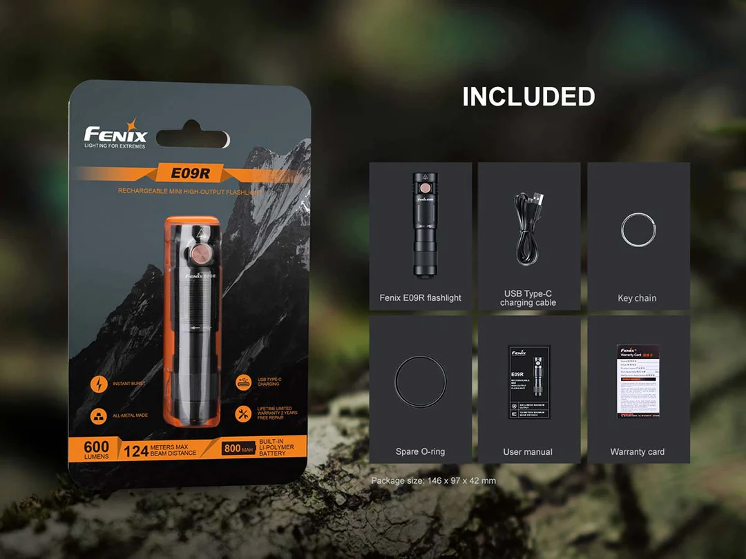 The Fenix E09R Rechargeable Flashlight is the perfect everyday carry companion. At only 3.1” long and less than 1” round, this small flashlight can still easily light up your surroundings. The side switch lets you cycle through four brightness levels including a Moonlight mode for up-close tasks that can last up to 70 hours. And when even more light is needed choose the Burst mode for a short 600 lumen burst of light. The built-in battery is USB Type-C rechargeable and the port is creatively hidden beneath the head to maintain appearance and create a dustproof and waterproof seal. Perfect for your pocket or your keychain, the Fenix E09R offers maximum illumination in a small EDC size.