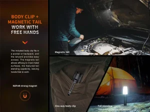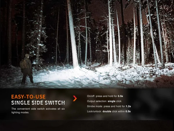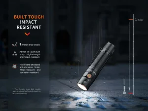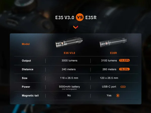 Built-in rechargeability and improved performance are what make the Fenix E35R flashlight unique from its predecessor, the Fenix E35 V3.0. This small flashlight, which is only 4.72 inches long, is able to blast a maximum 3100 lumens 853 feet (260m)—amazing for a flashlight this size! The single side switch activates on/off and all lighting modes—no need for a tail switch. A magnet now sits where a tail switch normally would, allowing you to attach the flashlight to most metal surfaces for hands-free use. It’s USB-C rechargeable with a battery level indicator and is waterproof and dustproof. When you need a rechargeable super bright EDC flashlight, the Fenix E35R is the perfect choice.