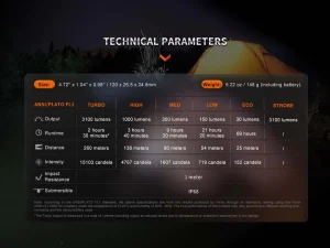 - Uses a Luminus SST70 LED with a lifespan of 50,000 hours.