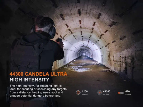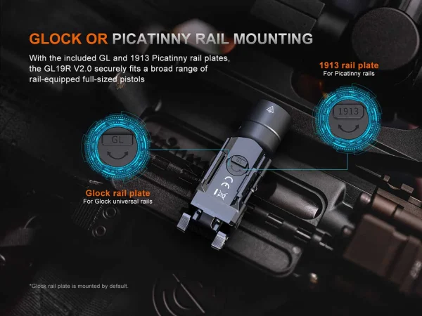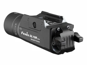 The Fenix GL19R V2.0 tactical weapon light redefines pistol illumination, quadrupling the beam intensity and more than doubling the effective range of its predecessor. It delivers 1200 lumens an impressive 1378 feet (420 meters), ensuring superior target identification and unmatched situational awareness. Ambidextrous switches along with modular switch configuration offer effortless activation, while the quick-lock mechanism allows for rapid attachment and detachment to Glock or Picatinny rails for most full-sized pistols. USB Type-C rechargeable, impact resistant with an IP66 rating makes the GL19R V2.0 tactical weapon light a rugged and indispensable asset.