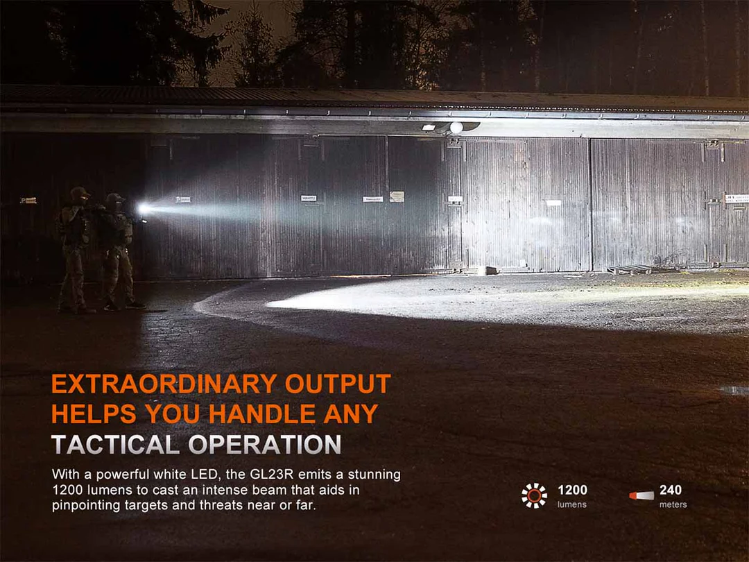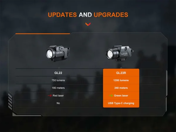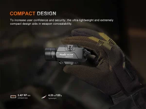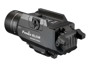 The Fenix GL23R Weapon Light is a great accessory for your full-sized pistol. This light features three lighting modes including a 1200 lumen white light, a green laser, and the ability to use both at the same time. Why a green laser? A green laser is much more visible in the daylight vs. a red laser, giving you the added security of acquiring a target quickly in all conditions. Ambidextrous switches allow you to activate the light with either hand and the mode dial allows you to select the lighting mode easily. A rugged build along with a built-in USB Type-C charging port rounds out the features of this must-own weapon light.