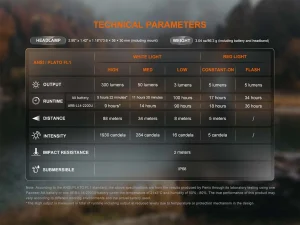 - Utilizes one Luminus SST20 white LED and two 2835 red LEDs; with a life span of 50,000 hours each.