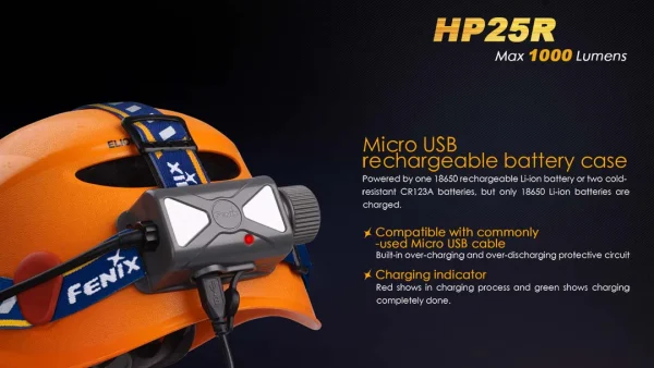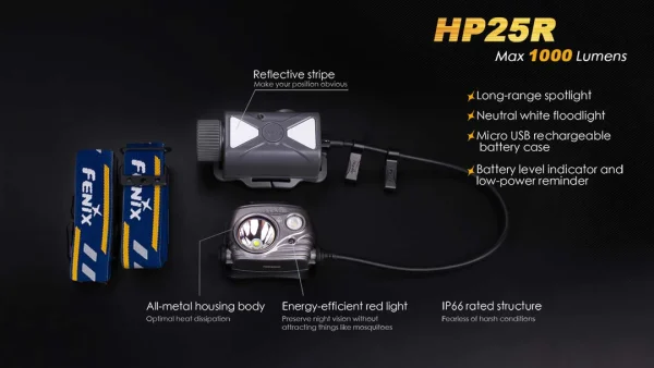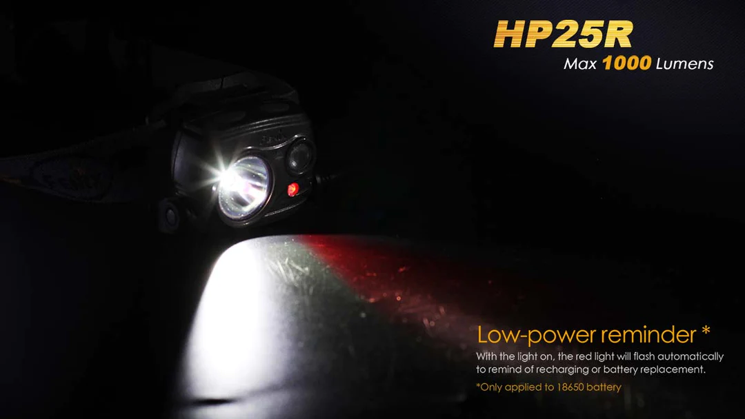 The Fenix HP25R Headlamp is the new standard in rechargeable headlamps. Offering nine modes between a neutral white floodlight, spotlight and red light, this headlamp will easily meet any need while hiking, camping, search and rescue and even cave exploration. The battery level indicator will let you know when it’s time to recharge via the micro-USB cable from any USB power source when the included 18650 Li-ion battery is used.