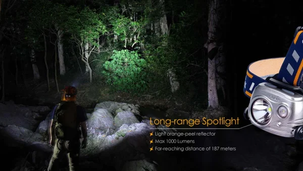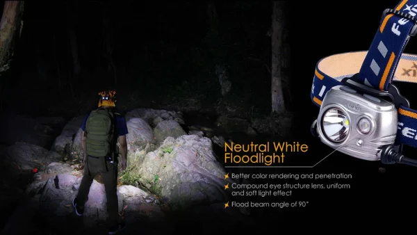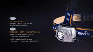 Lighting Modes: 4 brightness levels on spotlight, 4 brightness levels on floodlight, and Red