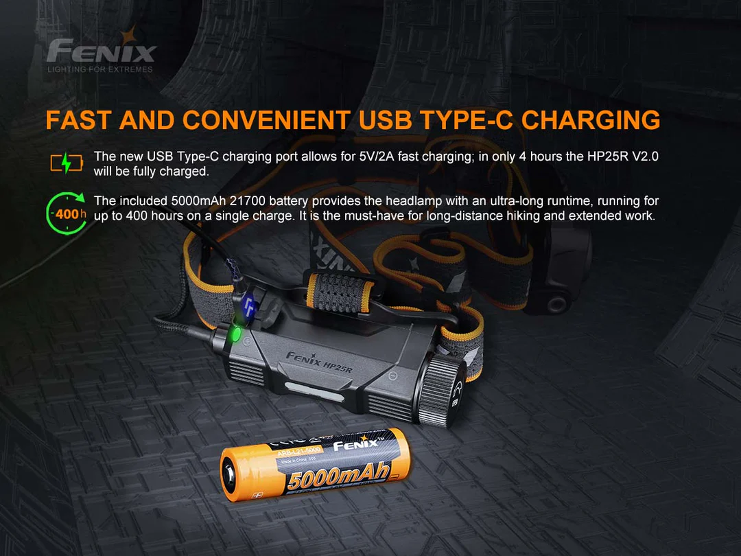- Included a Fenix ARB-L21-5000 Li-ion battery, compatible with a 18650 Li-ion battery.