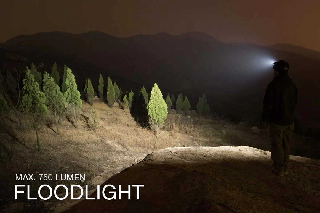 Fenix HP30R rechargeable headlamp employs power and versatility in rare form and design. The power comes in two forms. First, it is powered by two 18650 rechargeable batteries that allow for convenient extended runtimes in an easy to recharge case that has the unique ability to also charge your other USB rechargeable devices. The other “power” component comes from the sheer brute strength of it’s powerful beam. The 3 unique LED’s can all be used at once to disperse an amazing 1750 Lumens that reaches over 650 feet (200 meters) showing you items in the distance that few would imagine.