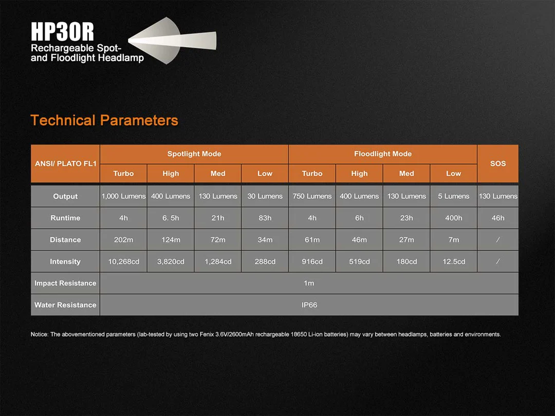 Additional Features of the Fenix HP30R USB Rechargeable Headlamp