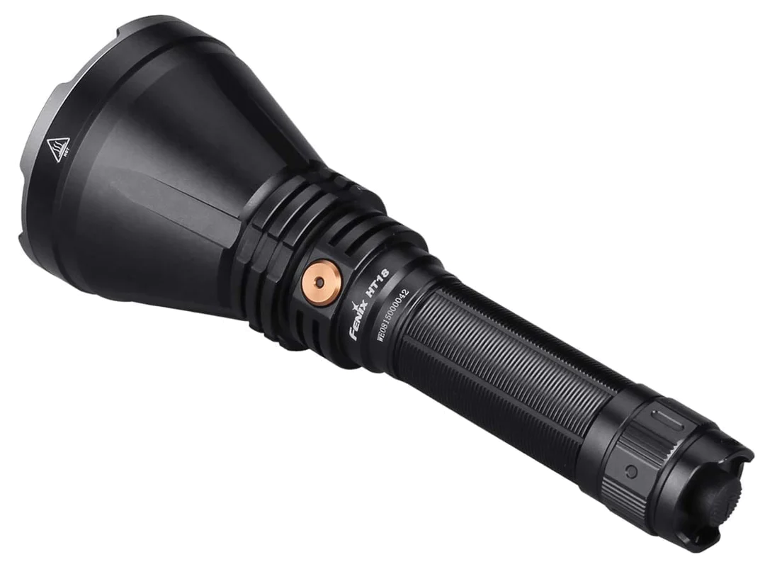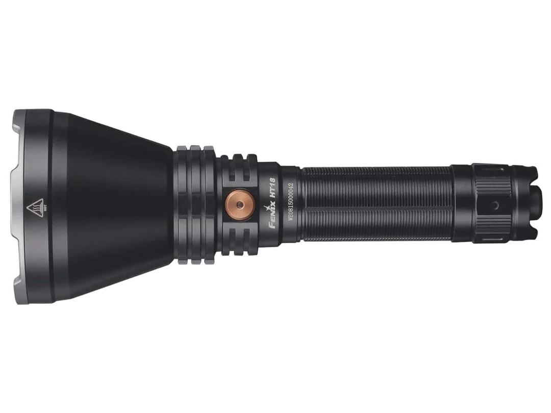 The Fenix HT18 hunting flashlight is a hand-held long-distance flashlight that can throw a maximum 1500 lumens 3,035ft (925m)—that’s over half of a mile! Extremely small, this flashlight is only 7.2” long and weighs only 7.8 oz (excluding battery), nearly half the size of other flashlights that deliver that type of power. Hunters will appreciate the included red or green filters allowing you to filter the light, preserving your night vision and reducing the chance of spooking prey. The Fenix HT18 will be your new go-to hunting flashlight, and you can’t beat the long distance capabilities. Extend runtimes when using the included 21700 li-ion battery and know its status with the battery level indicator. IP68 rated waterproof and dustproof rounds out the features of this spotlight built for those needing a small, tough flashlight with an incredibly far beam distance.