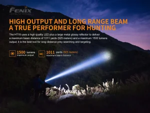 - 1500 lumens maximum output and 925 meters maximum beam distance for the HT18 long distance hunting flashlight.