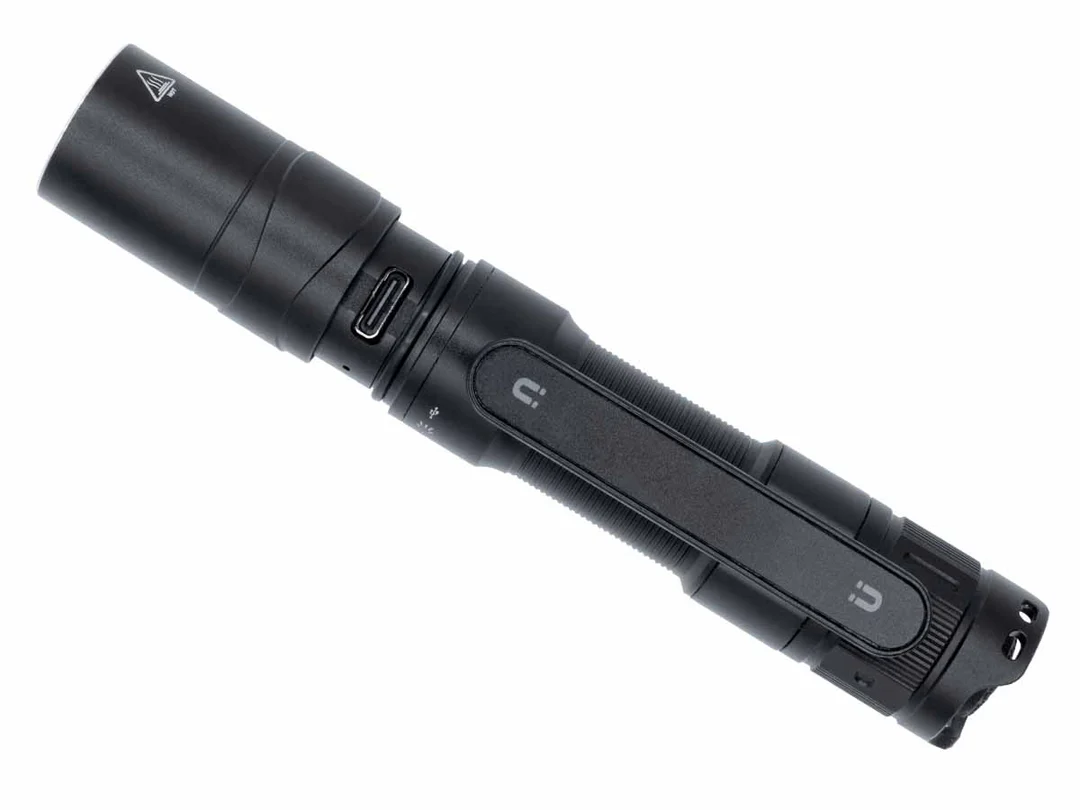 The Fenix LD12R Rechargeable EDC Flashlight is perfect for your everyday carry. This compact, rechargeable flashlight features dual light sources with a powerful main light with impressive brightness and a useful side light for utility. Powered by an included 14500 Li-ion battery, the flashlight is charged via the USB-C charging port—hidden for added protection and a clean look. The body clip includes a magnet allowing you to attach the LD12R to most metal surfaces for hands-free lighting. Versatility is the name of the game for this great EDC flashlight.