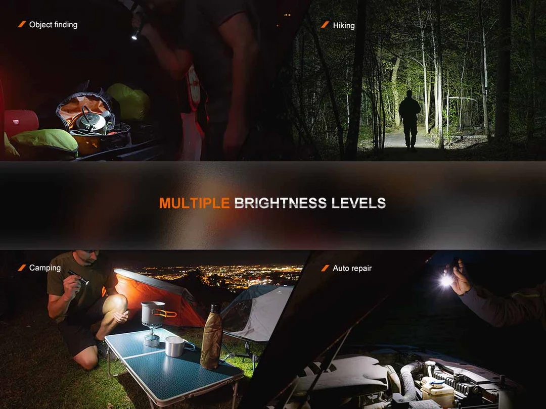 Lighting Modes: Seven lighting modes including five brightness levels, Strobe, and SOS