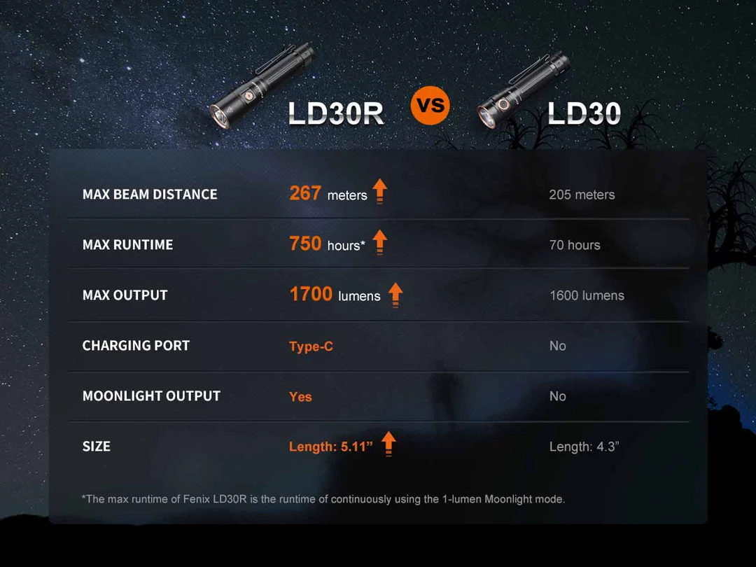 Please note that even though this product is named after the LD30, they are very different lights in size and performance.