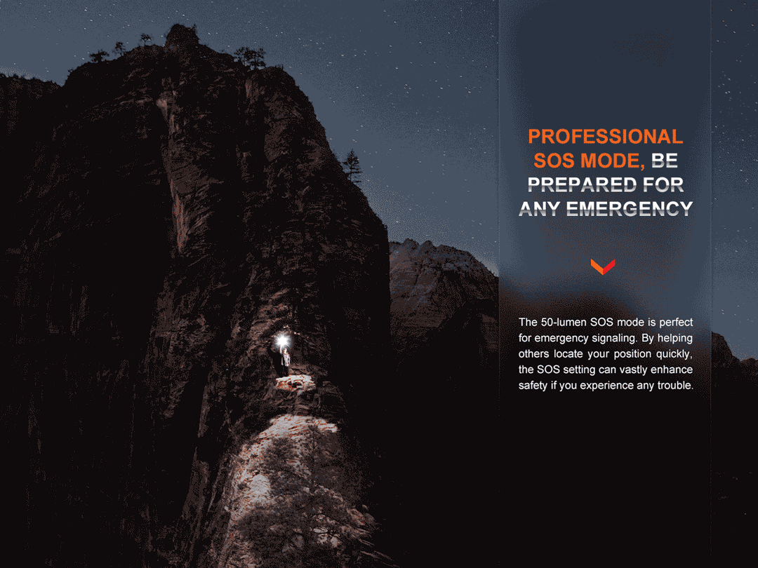 - The SOS mode and Strobe mode can enhance user’s safety in various outdoor activities.