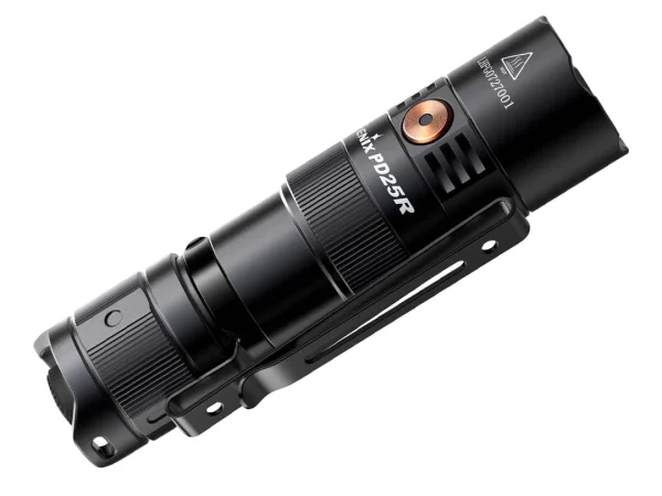The Fenix PD25R rechargeable EDC flashlight is the long-awaited upgrade the fans of the PD25 have long been waiting for. This flashlight produces a maximum 800 lumens at 820ft (250m) of distance from an included 16340 rechargeable Li-ion battery or one CR123A. Use the tail cap switch for on/off and the momentary-on function while the side switch on the head is for mode selection. The two-position body clip hold this light securely to pocket or pack in a body that is only 3.6” long—perfect for everyday carry. IP68 rating makes it dust and water proof. The Fenix PD25R rechargeable flashlight is perfect for on the job, outdoor adventures, or your daily EDC needs.