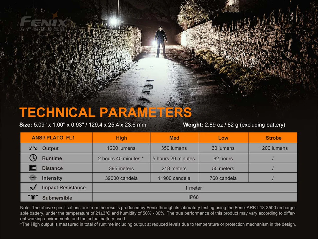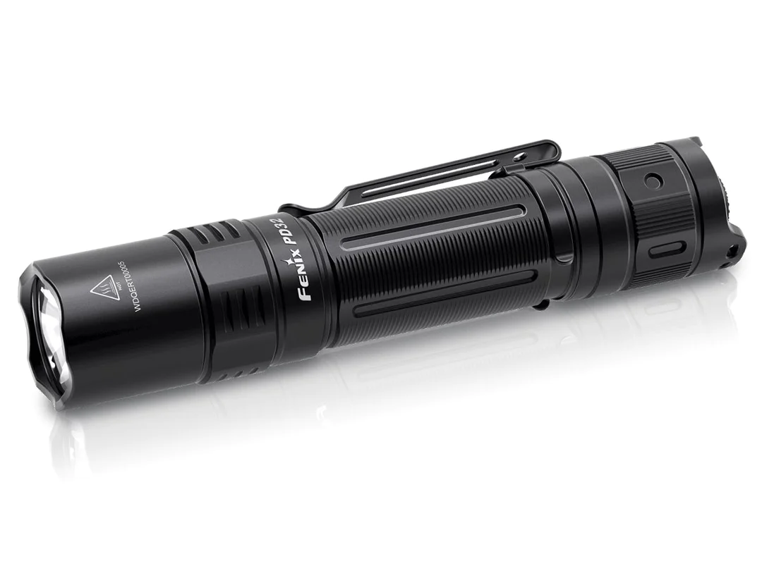 The Fenix PD32 V2.0 Flashlight is the perfect all-purpose flashlight, made for a variety of tasks. Featuring a multi-function tail switch that allows you to quickly choose between 3 brightness levels, for a maximum 1200 lumens and a beam distance of 1295ft, plus strobe. Tap and hold the tail switch for a fast momentary on. At just over 5” long, this flashlight is a great everyday carry size. Perfect for hiking, camping and outdoor activities, the Fenix PD32 V2.0 Flashlight is powerful enough for law enforcement and search/rescue.