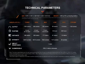 - Uses one Luminus SFT40 LED with a lifespan of 50,000 hours.