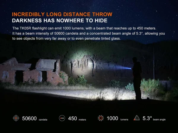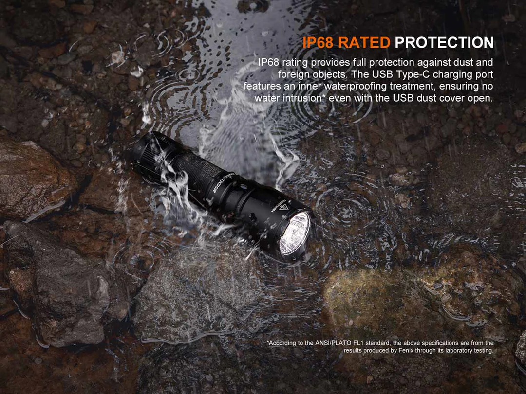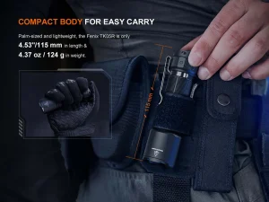 At only 4.53” long, the Fenix TK05R Tactical EDC Flashlight is almost 25% smaller than our standard tactical flashlights, which makes it a great everyday carry size. But don’t worry about sacrificing size for performance. This compact light produces an intense, concentrated beam that can throw a maximum of 1000 lumens 1476 feet—almost 500 yards. This fierce beam can even penetrate optical barriers like tinted glass. Dual tail switches operate three brightness levels and strobe. USB Type-C charging and a battery level indicator are built into the body. The flashlight is rated IP68 waterproof and dustproof, and the charging port includes inner waterproofing. An incredibly long throw in a small, compact size, makes this the one to own for both EDC and tactical use—a great backup light for law enforcement!
