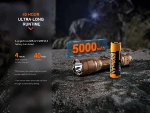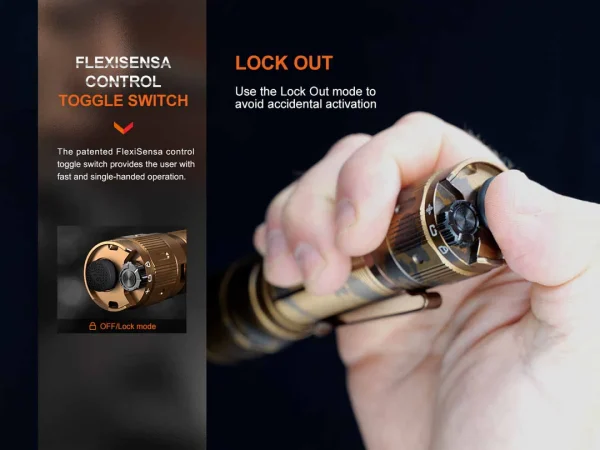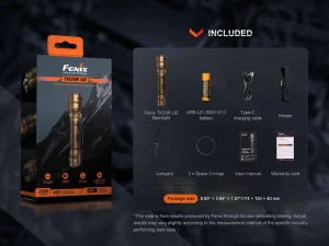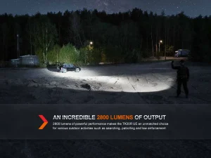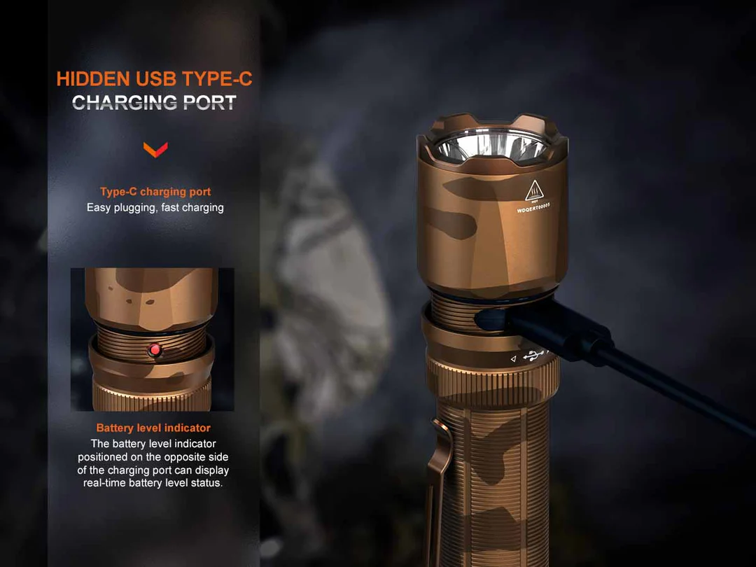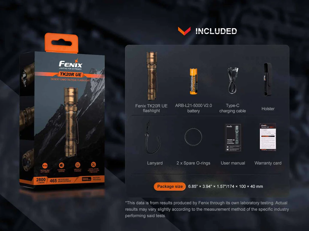 The Fenix TK20R UE flashlight features the new FlexiSensa tactical switch which allows you to switch between Tactical mode, for instant access to Turbo or Strobe only, Duty mode to single tap for all brightness levels, and Lock Out to avoid accidental activation. Intelligent memory also remembers the last level chosen, including between modes. A maximum of 2800 lumens can be thrown 1526 feet (465 meters). Quickly recharge the flashlight by unscrewing the port cover and plugging in the included USB Type-C cable. Available in four stylish colors, the TK20R UE is the ultimate in flashlight performance.