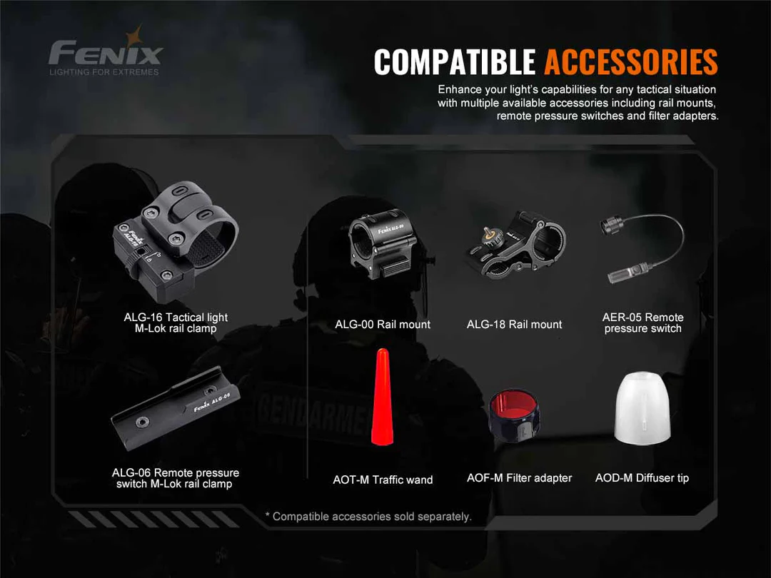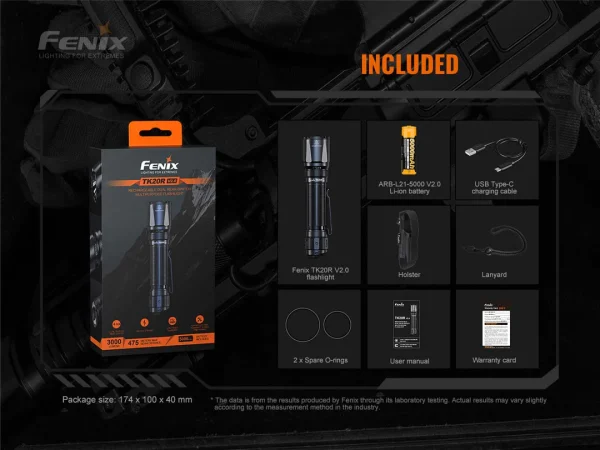 - Included a Fenix ARB-L21-5000 rechargeable Li-ion battery.
