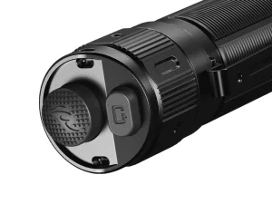 The Fenix TK20R V2.0 rechargeable flashlight features incredible performance by throwing a maximum 3000 lumens 1558 feet (475m). Quickly and easily operate the light, and choose between six lighting modes, by using the dual tail switches. Recharge the TK20R V2.0 by unscrewing the protective charging port cover and plug in using a USB Type-C cable. The TK20R V2.0 is durable and rugged with an IP68 dustproof and waterproof rating. Powered by an included rechargeable 5000mAh li-ion battery, the Fenix TK20R V2.0 rechargeable flashlight is a great tool for outdoors or tactical applications.