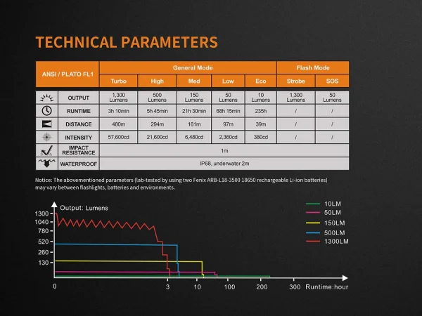 - Cree XHP35 HI neutral white LED, with a lifespan of 50,000 hours