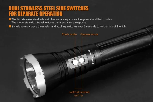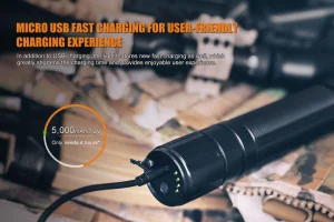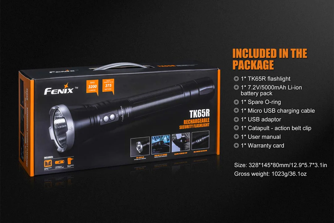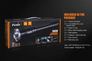 The TK65R rechargeable flashlight is a high-performance product specifically made for law enforcement and security use. Fitted with a Cree XHP70 LED, the TK65R emits a powerful 3200 lumens and a far-reaching 1,230ft (375m) beam. This flashlight is IP68 rated waterproof and dustproof and its seven lighting modes are easily operated by it’s dual side switches. The built-in battery is easily rechargeable via the USB port and can be fully charged in just 4 hours. The TK65R also includes a newly designed catapult-action belt clip which allows you to more quickly detach and use your flashlight.