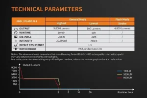 - Uses 3 Cree XHP70 LED with lifespan of 50,000 hours – max 9000 lumens