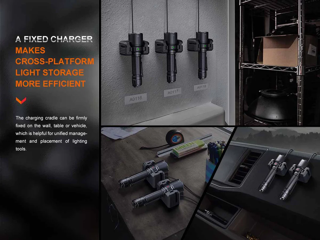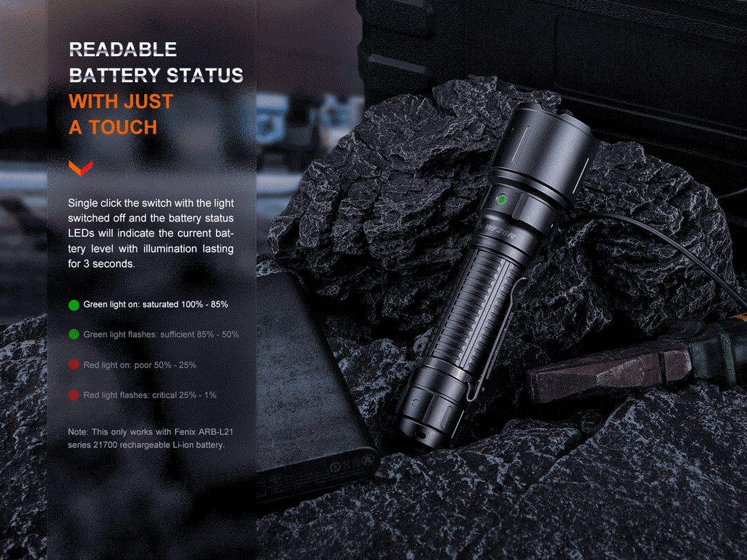 Fenix’s upgrade to the RC20 Flashlight, the WF26R is the perfect flashlight for those that need at-the-ready performance. Featuring its own charging cradle to store the light on, this flashlight’s battery is always at 100%—ready to blast a maximum 3000 lumens. Six lighting modes are operated by the dual tail switches. A battery level indicator lets you always know the battery’s available charge. The charging dock’s cable can be removed so you can charge the flashlight independent of the cradle if needed. IP68 rated waterproof and dustproof make this flashlight with charging dock a durable workhorse that is always ready for any task.