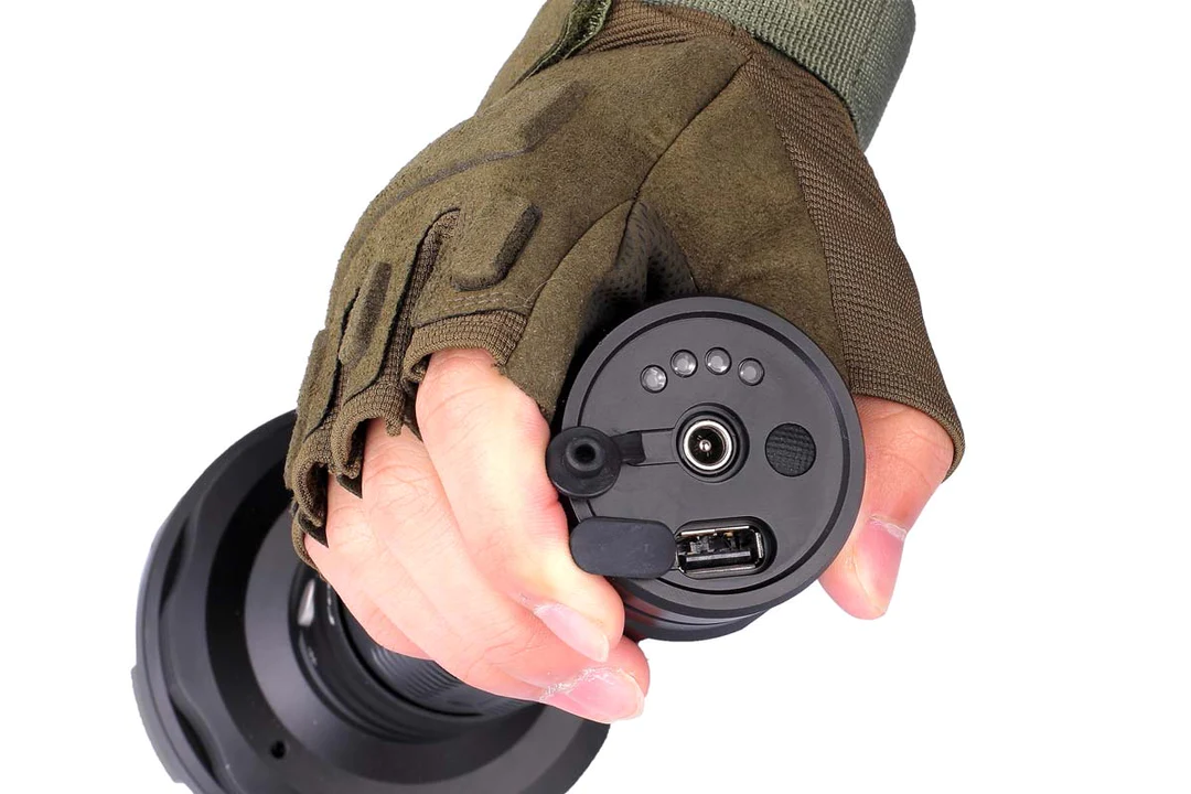 Upgraded for 2016, the Fenix RC40 rechargeable LED flashlight now blasts an incredible 6000 lumens ultra-long distances of up to 2,395ft. Dual side switches control the five output modes, strobe and S.O.S. The built-in rechargeable Li-ion battery pack, plus charging and discharging port with protective circuit, make it super efficient in battery charging, and also enables it supply power for other digital devices. The Fenix RC40 Rechargeable LED flashlight is an invincible companion when the ultimate power in lighting is needed.